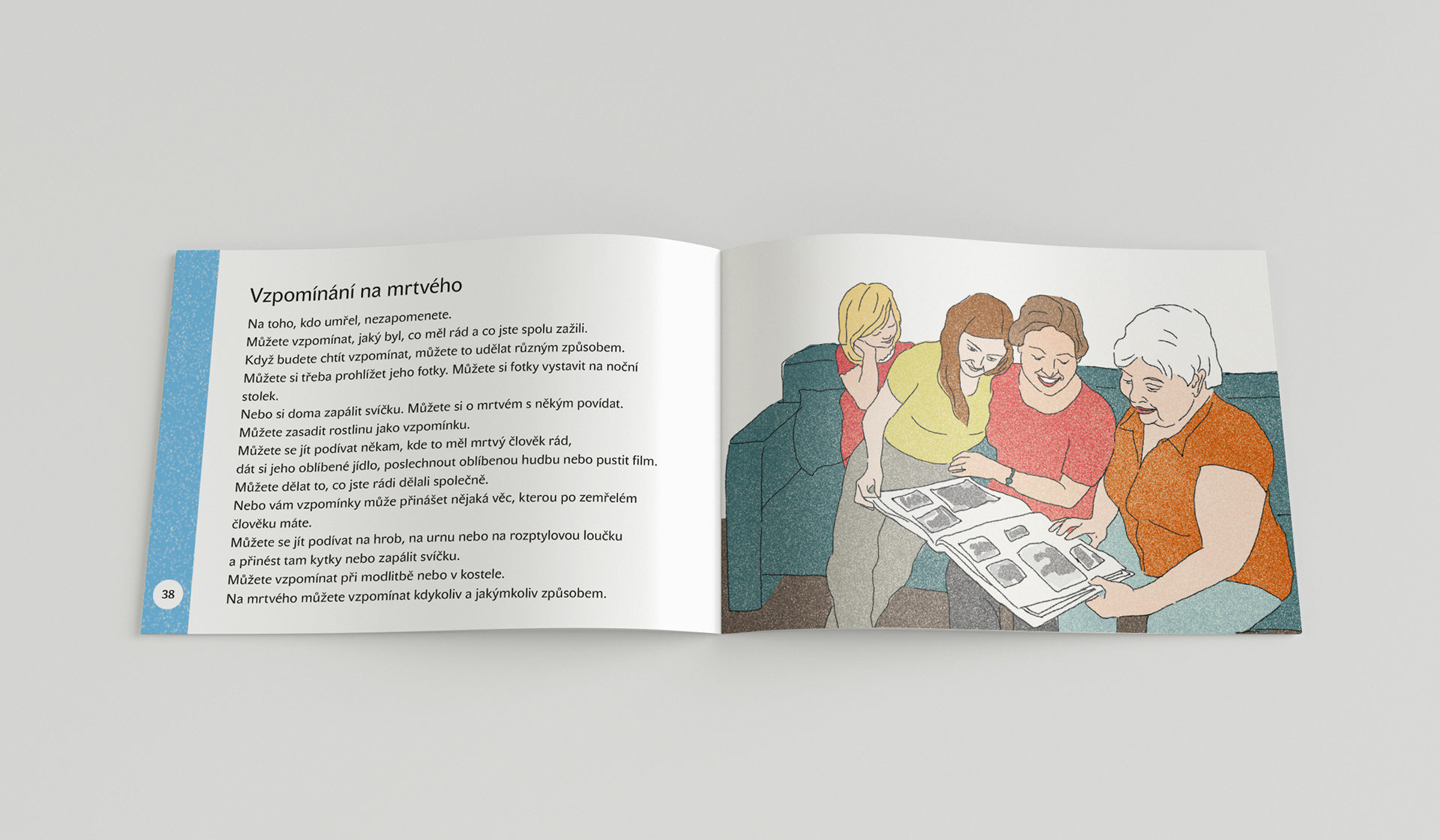 Brožura Smrt a truchlení pro SPMP ČR, co je to smrt, co znamená pro člověka smrt někoho blízkého, a jak se s tím může vyrovnat.