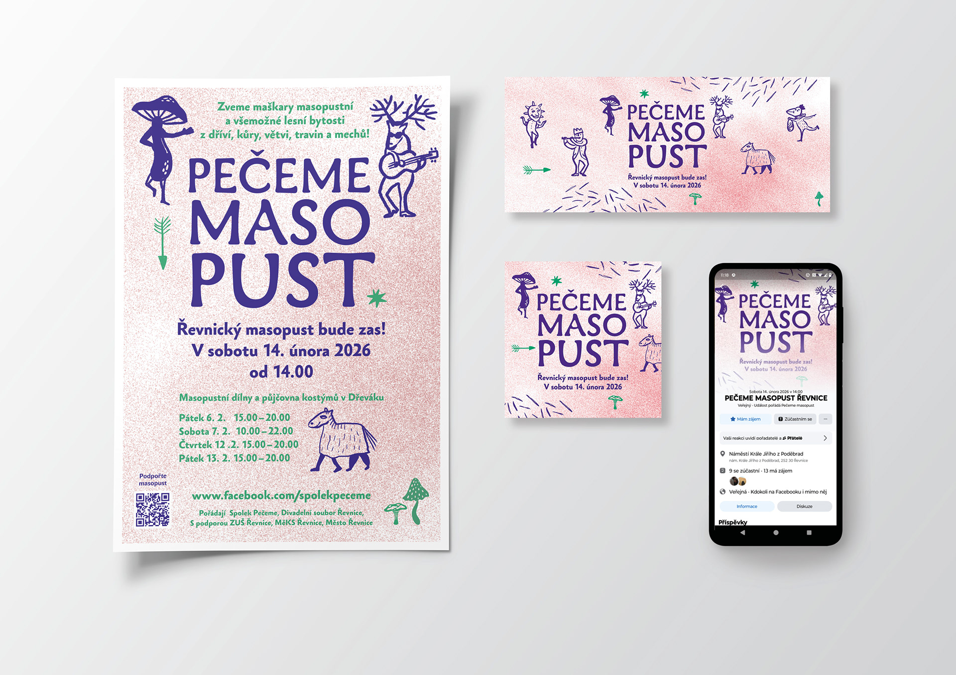 Plakát a další formáty vizuálu pro spolek Pečeme