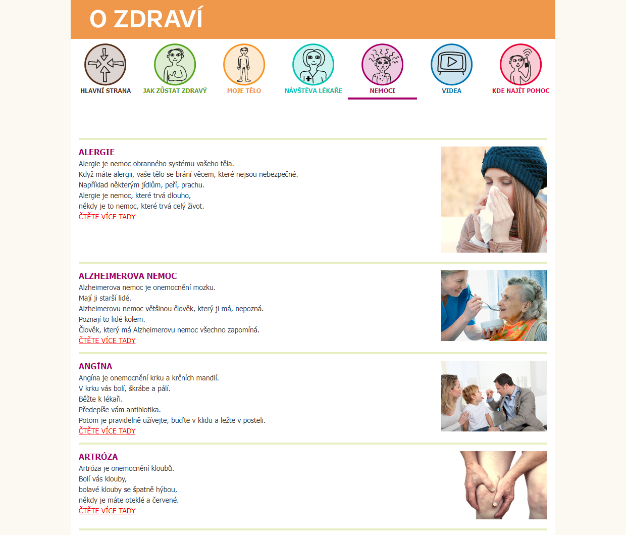 Web určený jako informační zdroj o zdraví a lidském těle pro lidi s mentálním postižením.