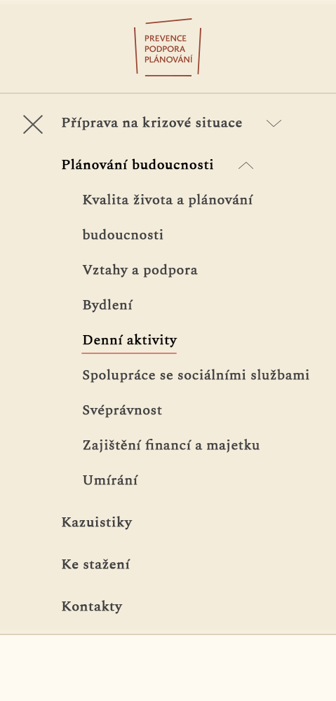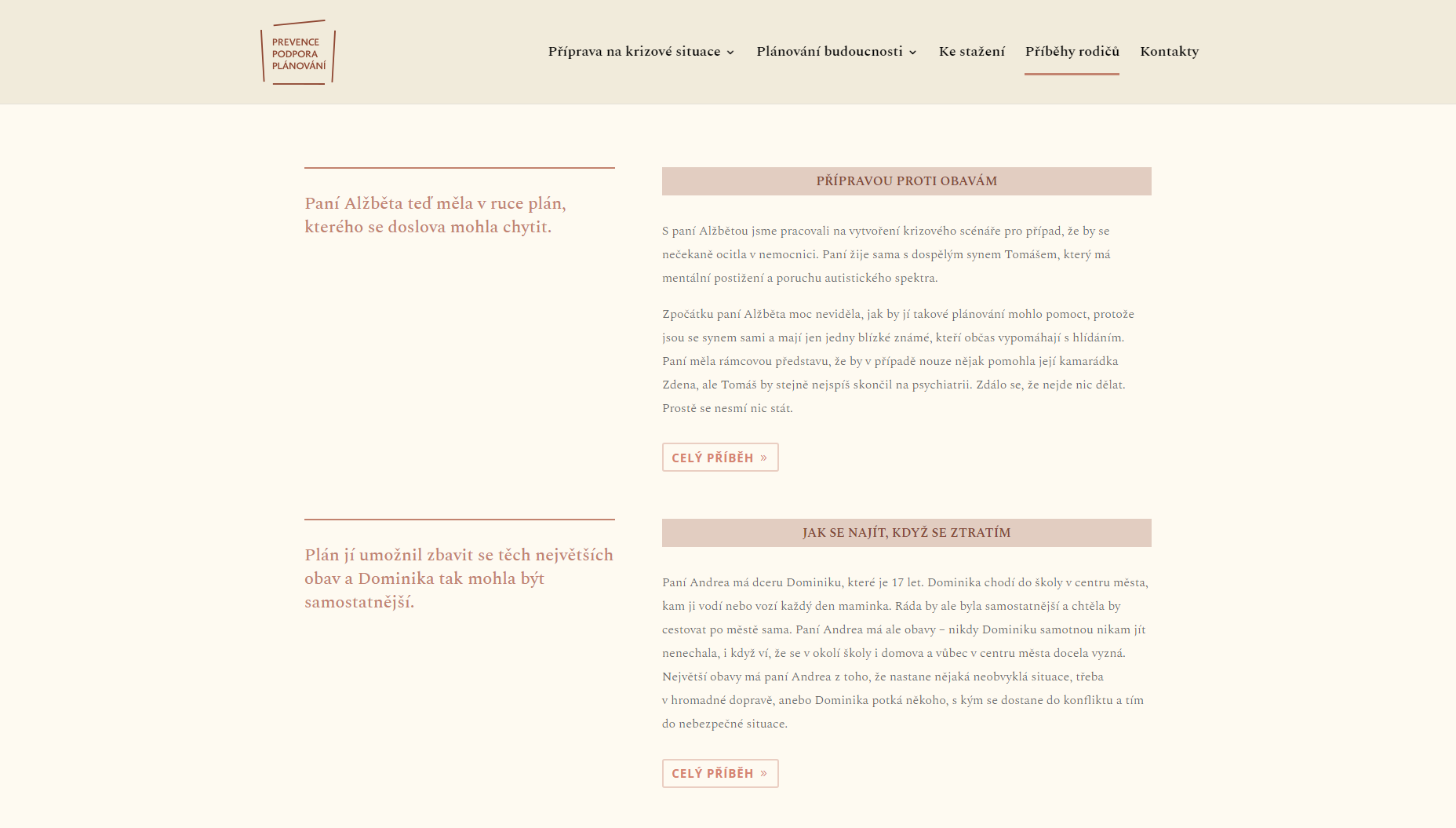 Návrh webové stránky, sdružující informace a pomůcky pro zvládání krizových situací, součást širšího projektu SPMP ČR